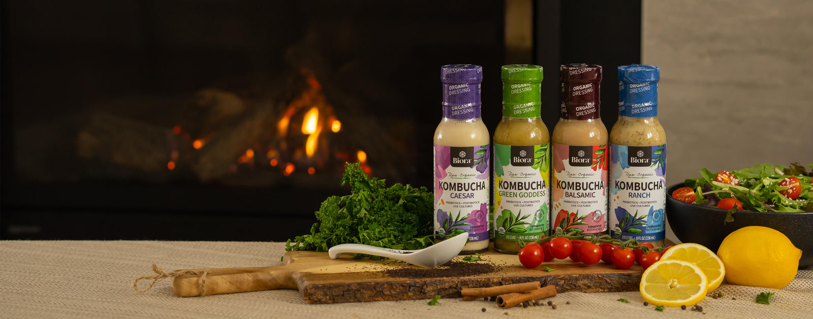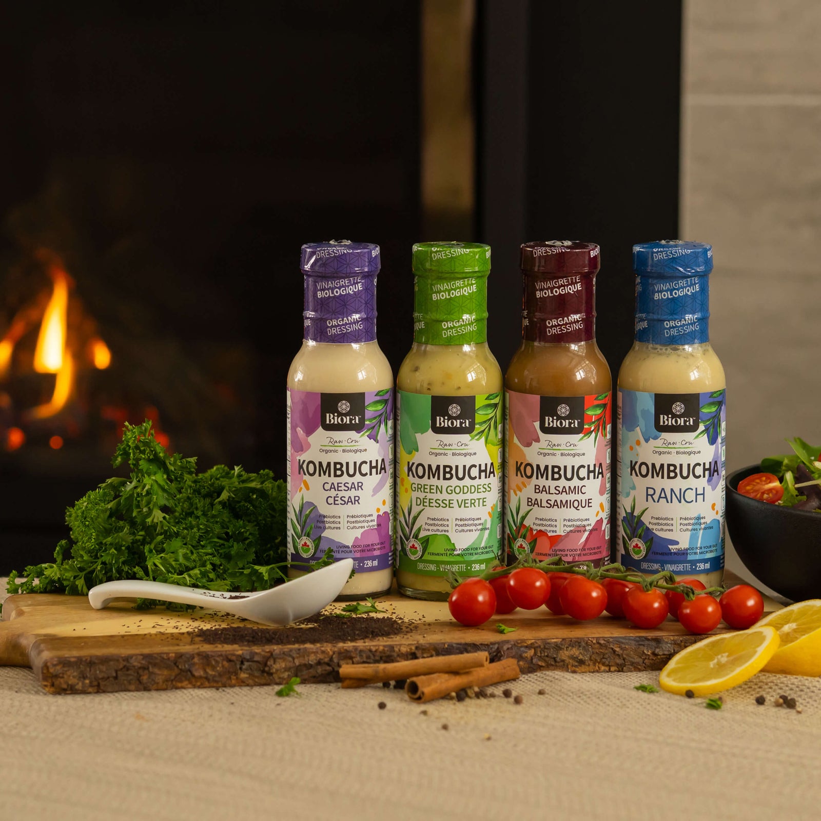 Discover Biora’s kombucha dressings, crafted for those who value health without compromising on taste. Our all-natural, vegan, and organic dressings—Kombucha Caesar Dressing, Kombucha Green Goddess Dressing, and Kombucha Balsamic Dressing—are non-GMO, gluten-free, dairy-free, and free from any preservatives. Low in calories, fat, and sodium, each blend is enriched with prebiotics, postbiotics, active cultures, and fermented botanicals, making it a powerhouse of gut-friendly benefits. Elevate your meals with our delicious, plant-based kombucha dressings—perfect for health-conscious gourmets.