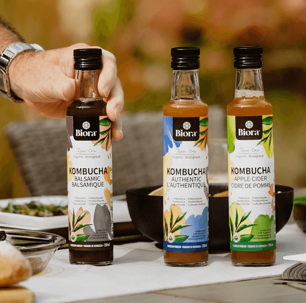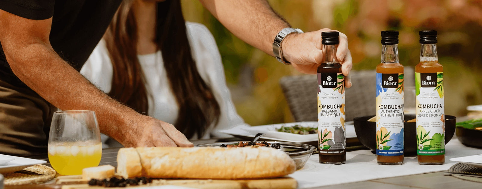 Explore the rich, gut-boosting flavors of Biora's kombucha vinegar collection. Each bottle, whether it’s our Kombucha Balsamic Vinegar, Kombucha Apple Cider Vinegar, or Kombucha Authentic Vinegar, is crafted from unfiltered and unpasteurized kombucha, preserving the integrity of vegan and gluten-free ingredients. Packed with prebiotics, postbiotics, and active cultures, our kombucha vinegars can support a healthy gut, enhancing your wellness with every serving. Perfect for dressings, marinades, or as a daily tonic, Biora's vinegars offer a naturally nourishing addition to any meal.